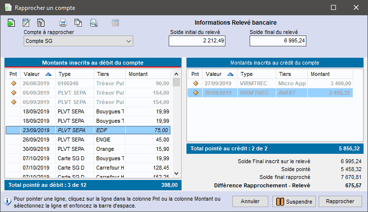 permettant de rapprocher les montants saisis avec les montants du relevé de banque.